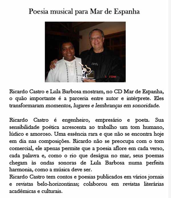 Após 4 anos de muita luta, decepções e alguns retrocessos, ficou pronto meu primeiro CD, em parceria com Lula Barbosa.